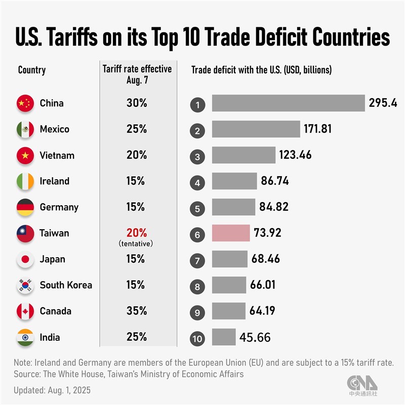 Lee also confirmed that Taipei is seeking to have the 20 percent tariff currently imposed by the U.S. reduced, and ensure that the tariff rate will not be added on top of existing most-favored-nation tariffs.