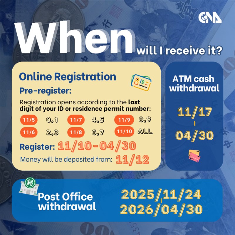 Taipei, Nov. 12 (CNA) Seven fraud cases linked to the distribution of NT$10,000 (US$322) cash government handouts to eligible Taiwanese citizens and permanent foreign residents have been discovered in recent weeks, the Ministry of the Interior (MOI) said Wednesday.